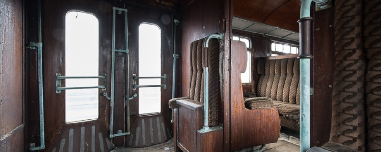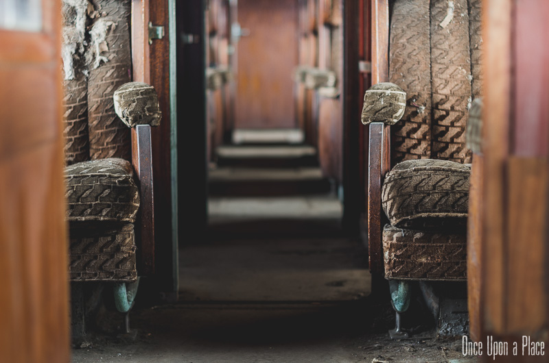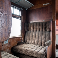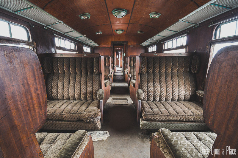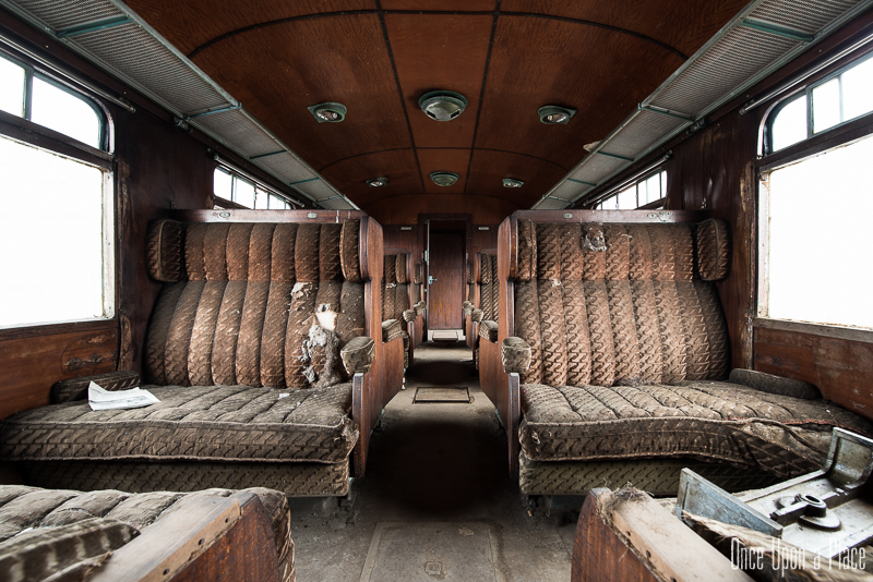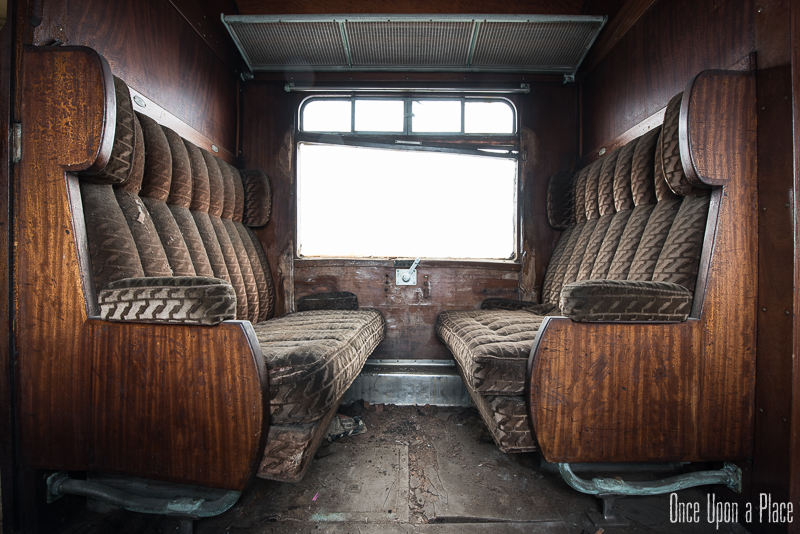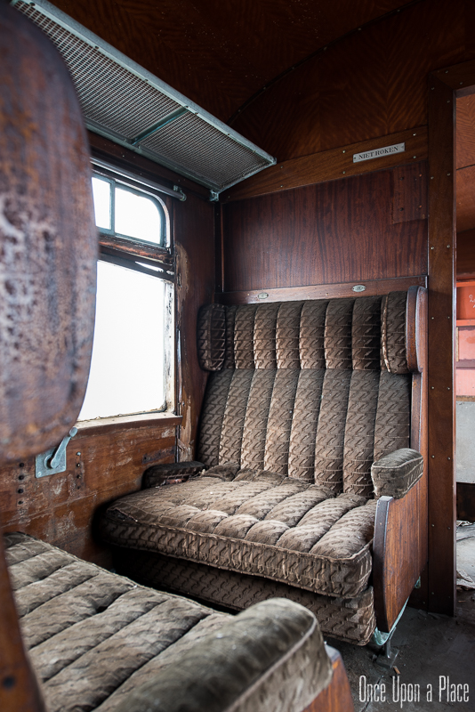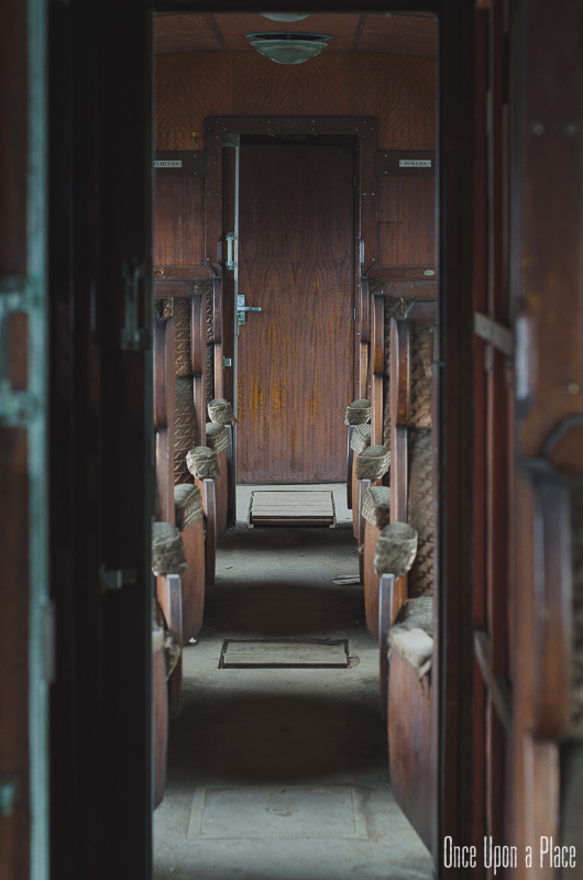 Une fois à l'intérieur, la magie opère : nous sommes transportés un demi-siècle en arrière ! Ce wagon semble tellement confortable comparé à nos trains actuels : une grande allée centrale, des boiseries jusqu'au plafond, de larges et profondes banquettes qui semblent si moelleuses... Nous sortons notre matériel et commençons à prendre des photos, ayant totalement oublié que dehors, c'est le 21è Siècle.