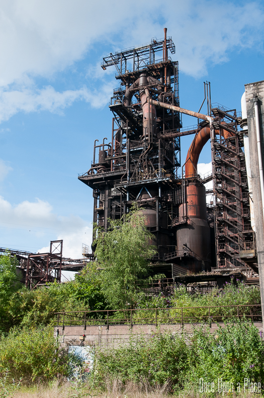 La visite se termine par des photos du haut fourneau depuis la voie de chemin de fer qui permettait le transport de fonte liquide jusqu'a l'aciérie par des wagons poche.