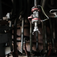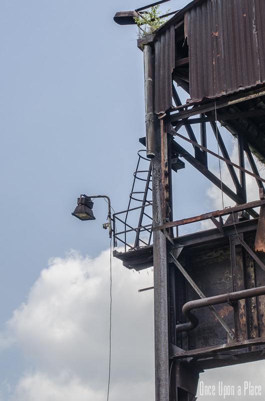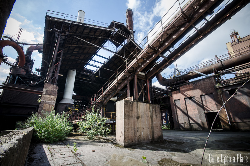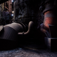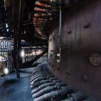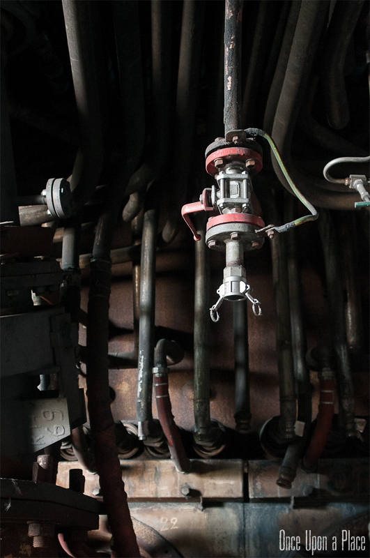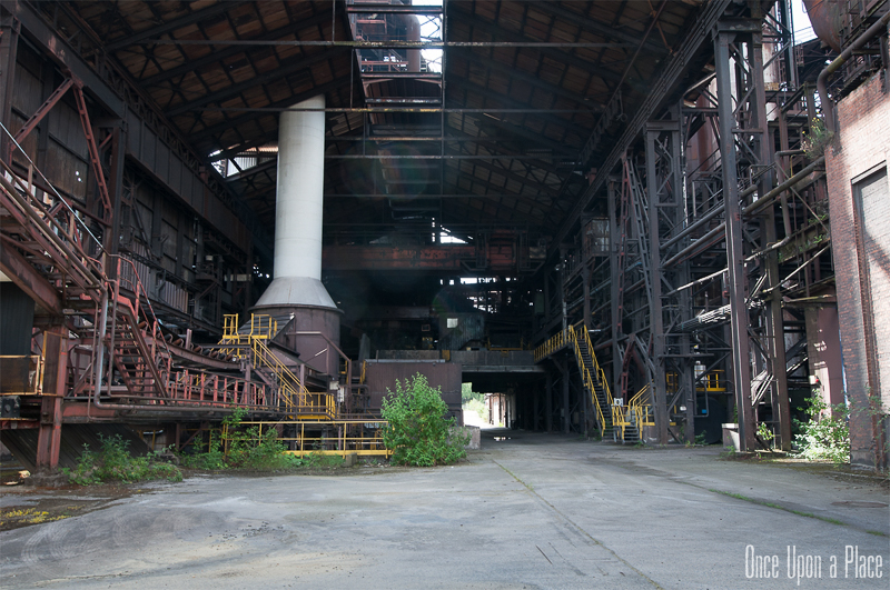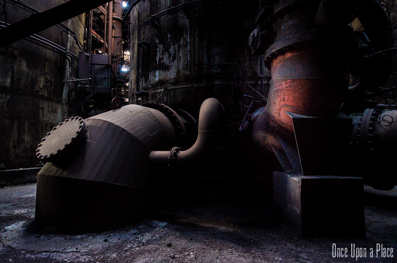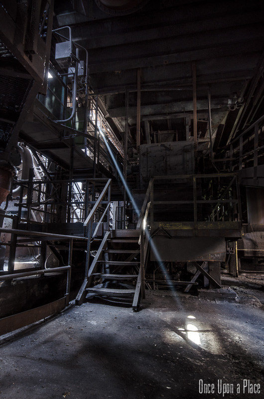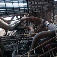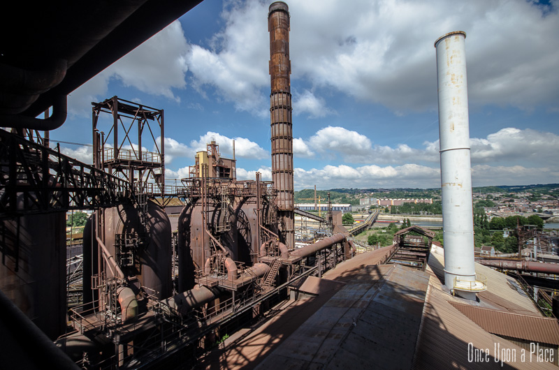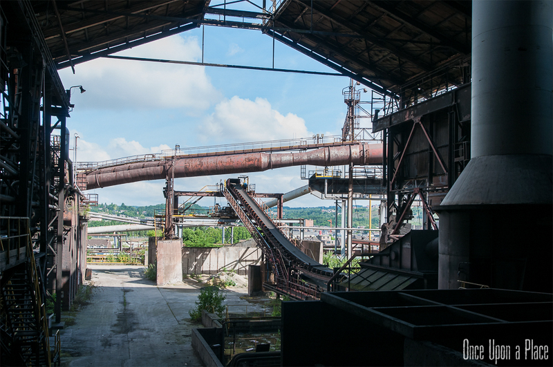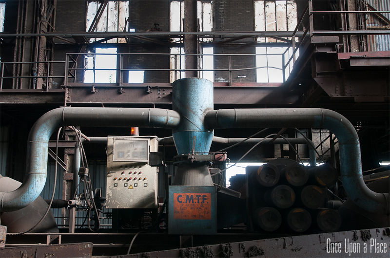 C'est sans doute la partie qui nous a le plus marqués, par sa taille et son esthétisme industriel. Juste en dessous il y a le plancher de coulée, les rigoles et la boucheuse, un peu plus loin la cheminée, la partie inférieure des cowpers, les trémies... Nous avons devant nous un véritable dédale de tuyaux, d'escaliers et de passerelles au milieu duquel nous nous sentons bien petits !