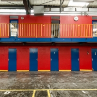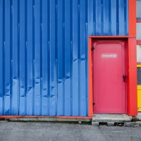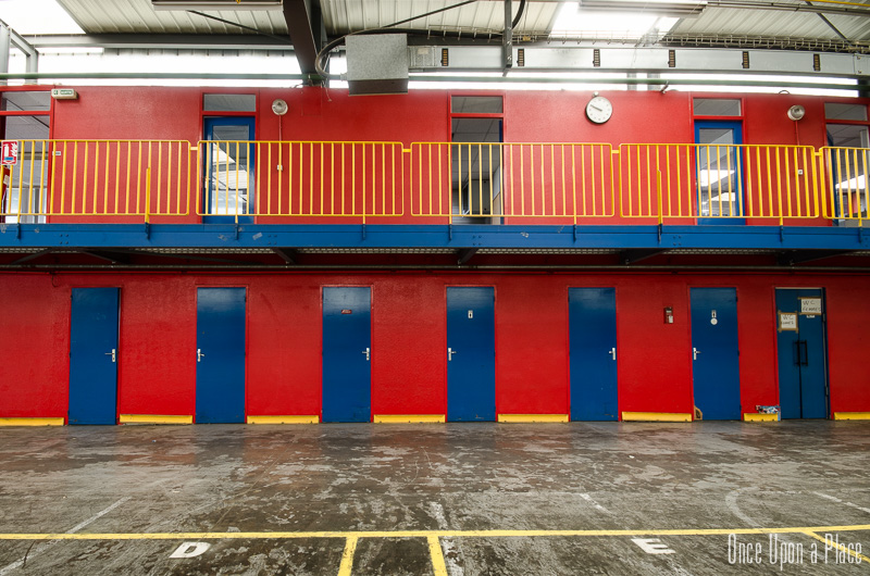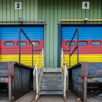 Dernière particularité de l’entrepôt, les portes tricolores des quais de chargement. Elles sont originales… et on ne peut s’empêcher d’imaginer que ces couleurs très ludiques avaient forcément un lien avec l’identité passée du site.