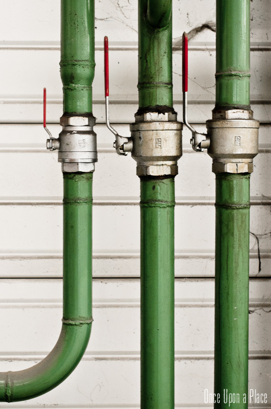Un petit couloir permet ensuite de rejoindre l’espace central du lieu. Encore une fois, il ne reste rien… hormis un reliquat de structure métallique avec un nombre incalculable de rouleaux ; certainement un reste de chaîne de montage.