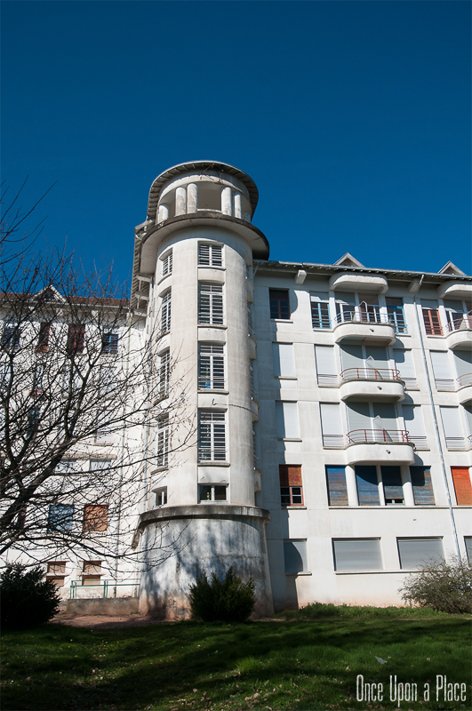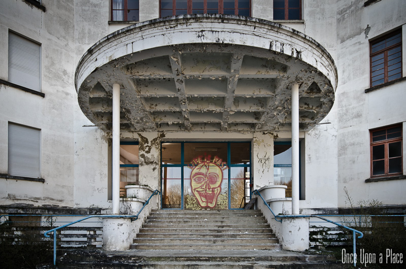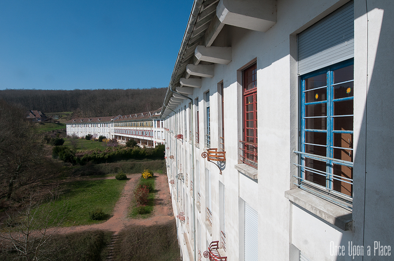 Nous voici arrivés devant notre but. La construction du bâtiment remonte à 1932, mais fut suspendue durant la guerre pour n'être finalement achevée que dans les années 40. Avec la disparition progressive des maladies pulmonaires, l'établissement se reconvertit en centre de soins et maison de retraite avant de définitivement fermer en 2008.