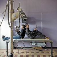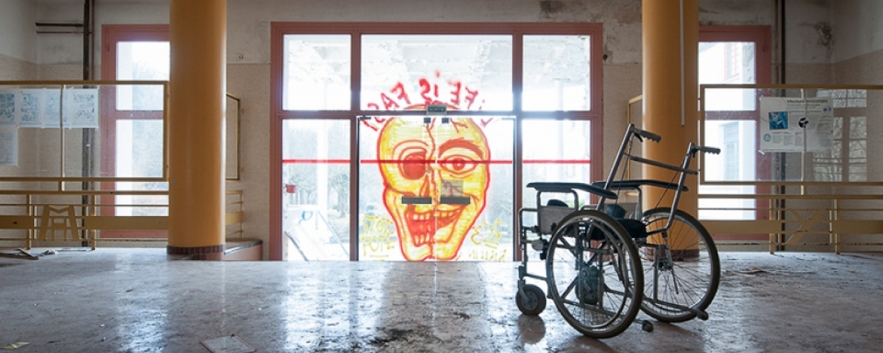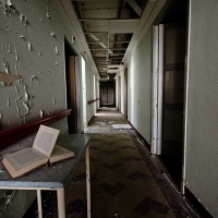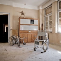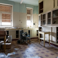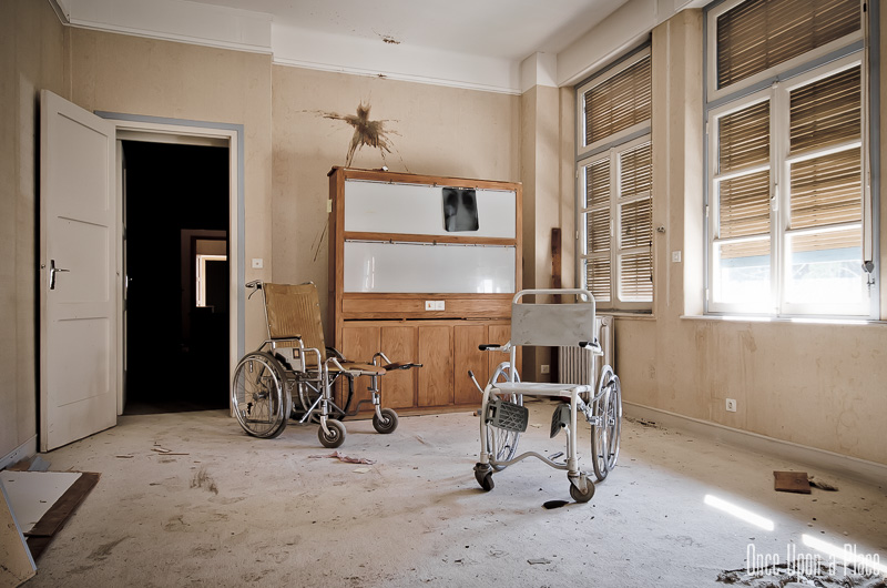 Il reste encore beaucoup de choses à photographier dans ces lieux, et de nombreuses salles offrent des sujets intéressants, comme celle uniquement meublée d'une vieille visionneuse pour les radiographies et de deux fauteuils roulants...