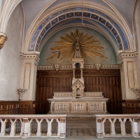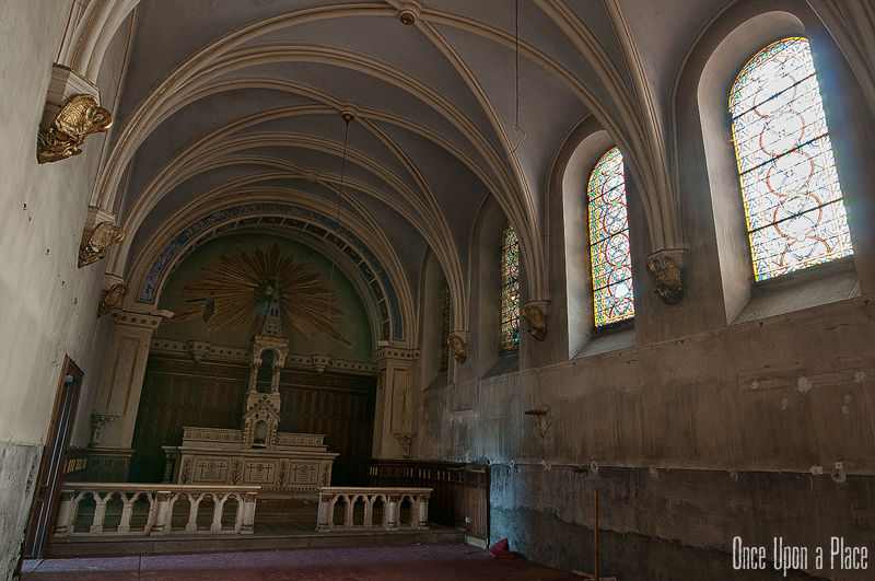 Nous atteignons ensuite la partie la plus ancienne de l'hôpital, la plus riche architecturalement. Ce corps de bâtiment date de 1822, c'est pourquoi le projet de démolition du site révolte les défenseurs du patrimoine. La chapelle gothique en fait partie et est restée en bon état avec son chœur, ses vitraux et ses boiseries.