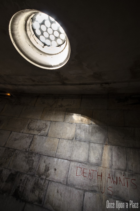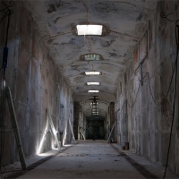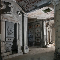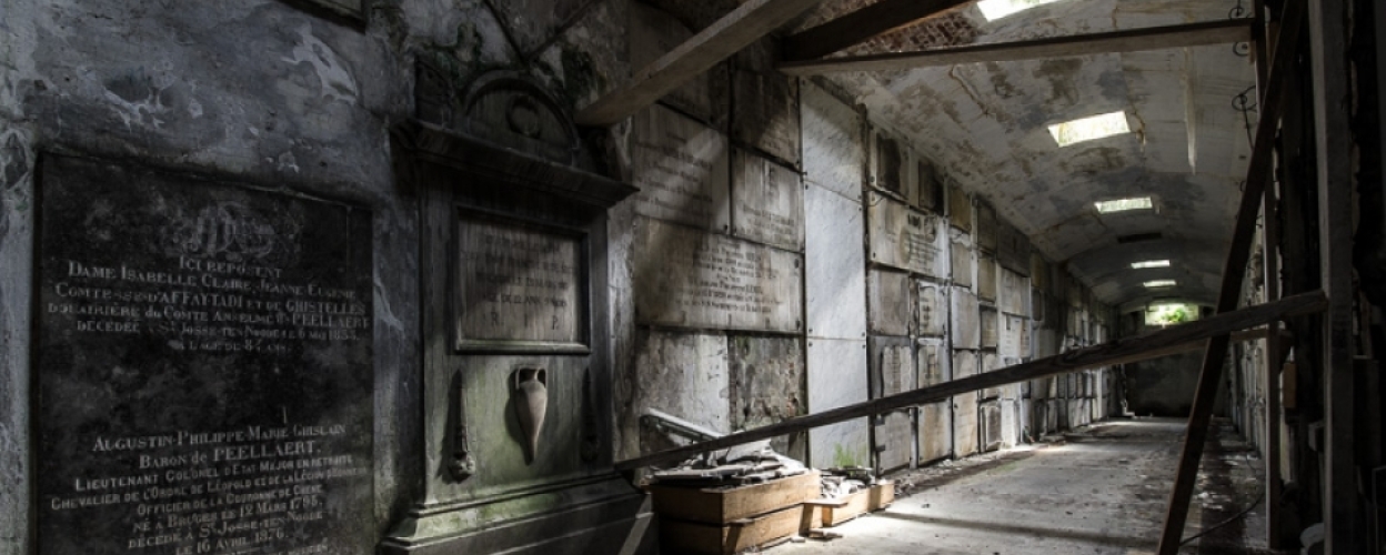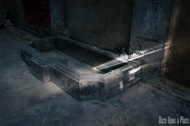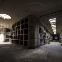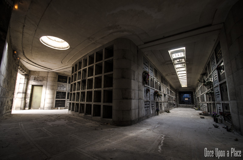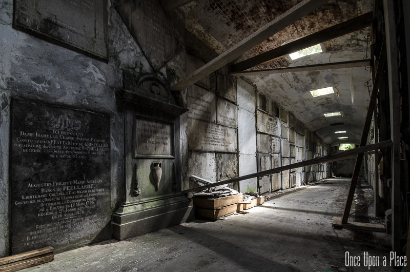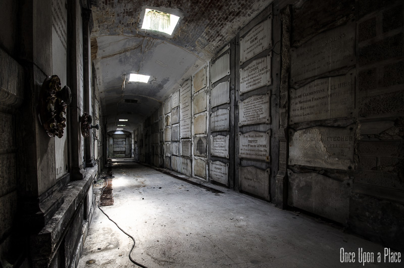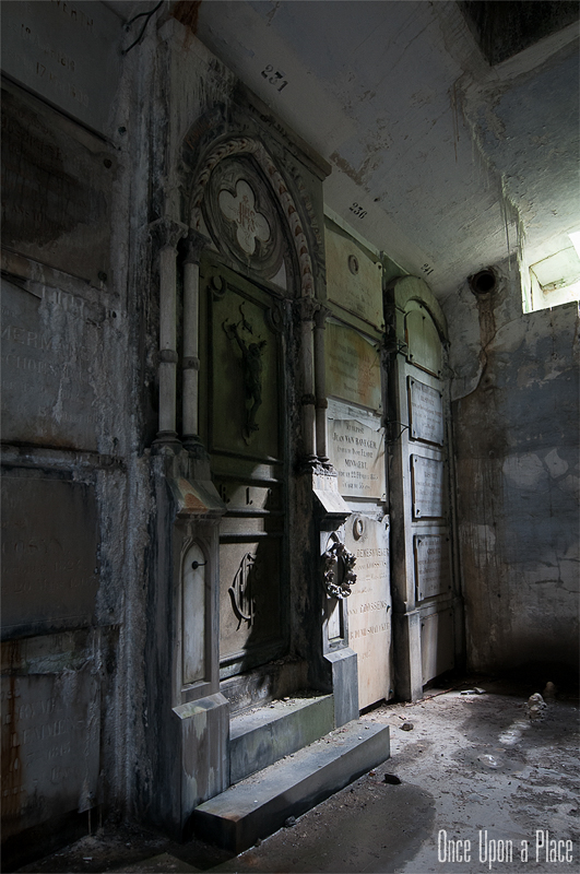 Ici le calme règne, uniquement interrompu par le plic-ploc de gouttes d'eau. A certains endroits on peut observer de la mousse et des petites formations calcaires qui sont apparues à cause des infiltrations. Avec les travaux au-dessus, certaines parties de la crypte sont plongées dans le noir presque total, notamment son centre, ce qui rendra les photos difficiles. Dans les allées adjacentes, les conditions sont meilleures, grâce aux rais de lumière perçant le plafond et mettant en valeur les reliefs des tombes.