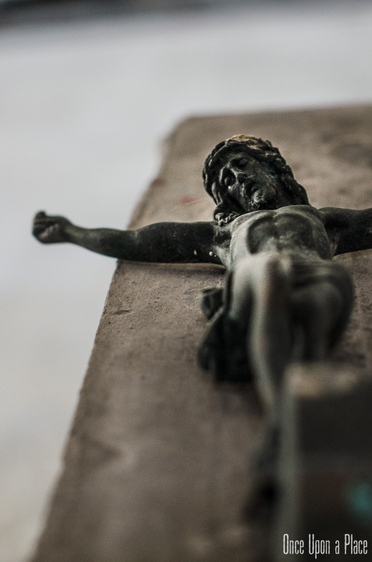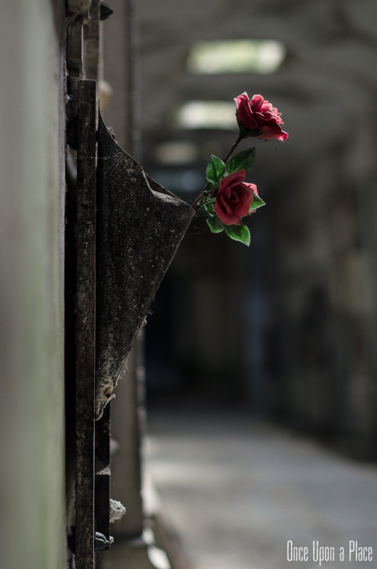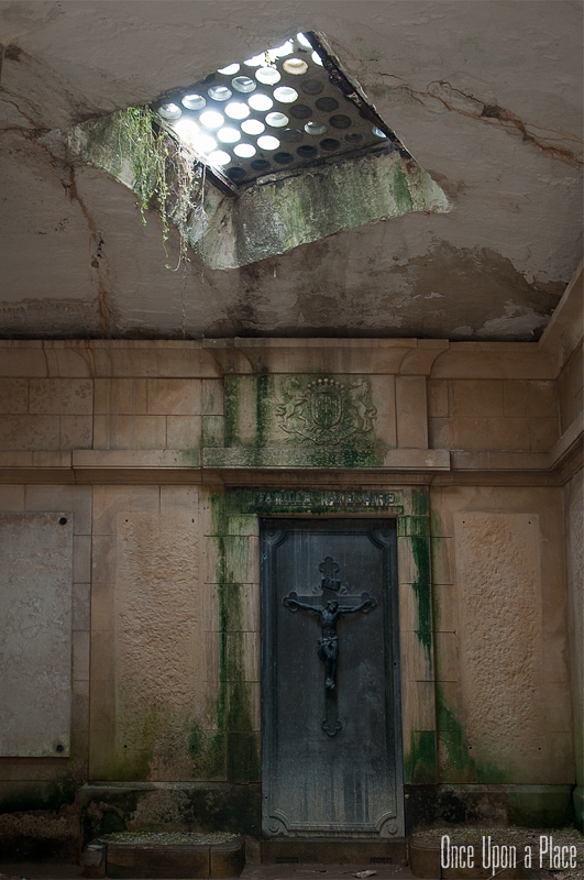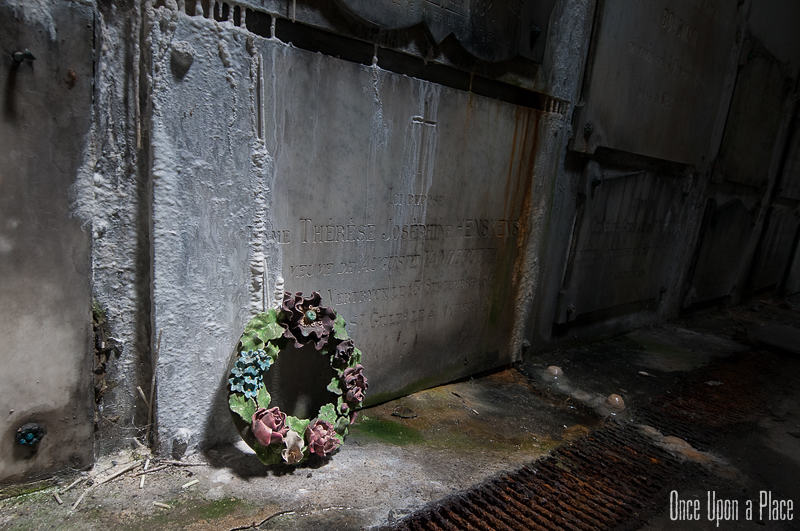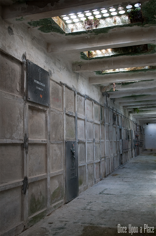 Située sous le plus ancien cimetière de la ville, on nous avait conseillé de visiter cette crypte tant qu'elle était en travaux. À cause d'infiltrations d'eau, elle est interdite d'accès depuis plusieurs années... les plafonds menacent de s'effondrer, et par conséquent toute une zone du cimetière en surface est devenue elle aussi inaccessible aux visiteurs. La ville a donc finalement décidé d'engager de coûteux travaux de restauration pour préserver ce patrimoine.