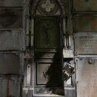 Deux jours plus tard, nous retournons sur les lieux. Cette fois-ci, la chance est avec nous, le cimetière est désert. Nous réempruntons le passage discret trouvé la première fois, et quelques secondes plus tard nous sommes enfin dans la crypte.