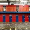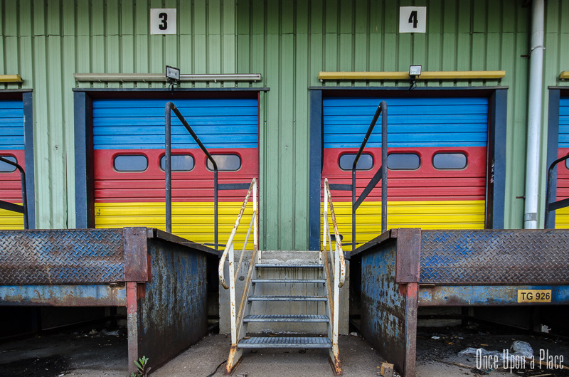 Dernière particularité de l’entrepôt, les portes tricolores des quais de chargement. Elles sont originales… et on ne peut s’empêcher d’imaginer que ces couleurs très ludiques avaient forcément un lien avec l’identité passée du site.