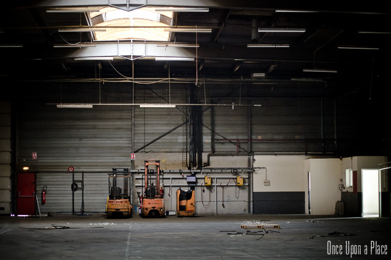 entrepot_couleursL'accès se fait sans difficulté. Nous pénétrons dans la zone principale : un vaste hangar très sombre souillé par de nombreuses tâches d’huile encore odorantes. Tout à été vidé, à l’exception d’une zone qui est devenue un cimetière de chariots élévateurs. Pourtant ils ne semblaient pas être en si mauvais état que ça.